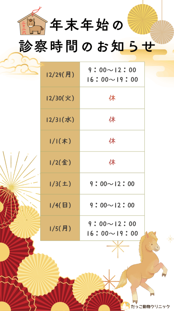 年末年始の診察について🐎
